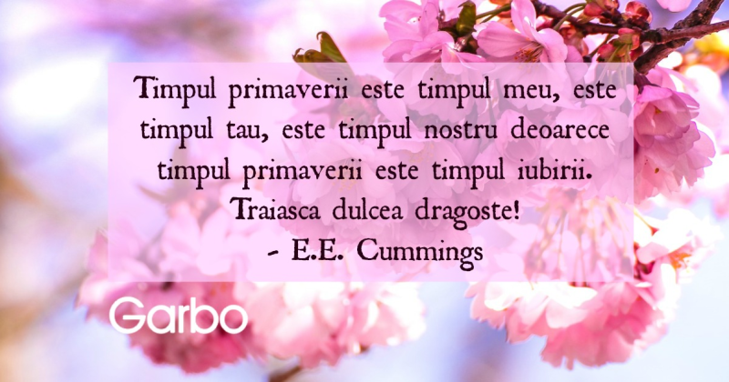 2. Timpul primaverii este timpul meu, este timpul tau, este timpul nostru deoarece timpul primaverii este timpul iubirii. Traiasca dulcea dragoste! - E.E. Cummings