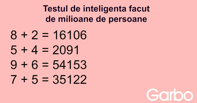 !!! Testul pare complicat asa ca studiati-l cu atentie inainte de a-l rezolva. Ca un mic indiciu, tot ceea ce va putem spune este ca pentru a-l rezolva sunt necesare cateva notiuni de baza de matematica. Testul porneste de la o logica simpla a acestor ecuatii aparent fara nicio logica. Asadar, iata mai jos testul de inteligenta. Pe pagina urmatoare gasiti si raspunsurile.