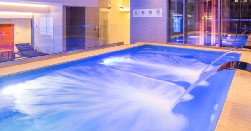 Amplasată la etajul doi al hotelului, piscina își întâmpină oaspeții într-un spațiu intim, confortabil și cochet și cu dotări de ultimă generație, precum un sistem de înot împotriva curentului de aer sau apă, trei zone de hidromasaj și două sonde de masaj cervicale.