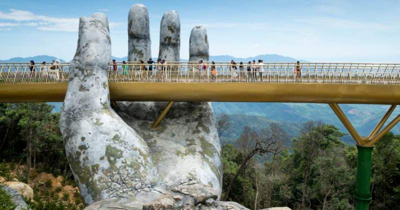Podul de Aur din Vietnam a fost proiectat de compania TA Landscape Architecture și face parte dintr-un proiect mai amplu de 2 miliarde de dolari, menit să atragă turiști în stațiunea Ba Na Hill.