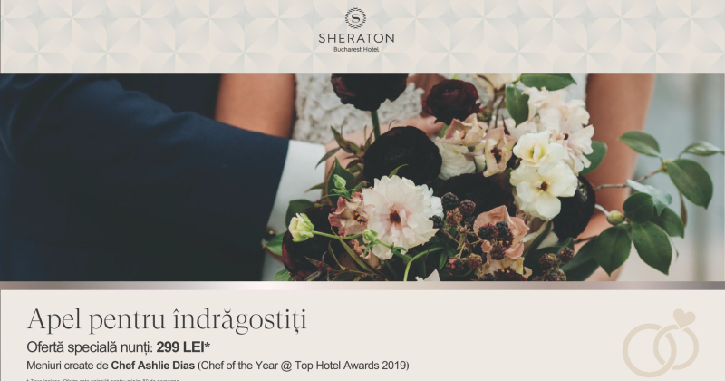 Incepe cea mai frumoasa poveste a unui cuplu. Porniti pe drumul iubirii pana la adanci batraneti alaturi de cei dragi voua, in inima orasului, la Sheraton Bucharest Hotel.