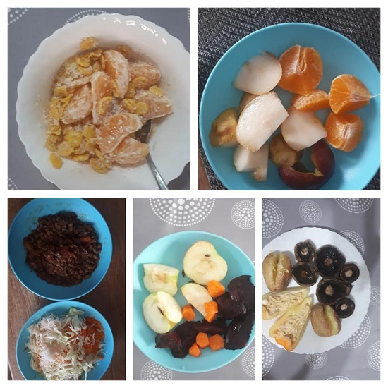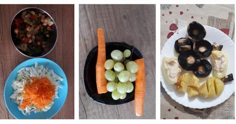 - 200 g mâncare năut cu roșii, 150 g salată de varză albă cu morcov ras și ridiche neagra