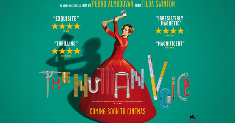 The Human Voice (2020, r. Pedro Almodóvar), nominalizat la Festivalul de Film de la Veneția, spune povestea unei femei care urmărește cum trece lângă valizele fostului ei iubit (care ar trebui să vină să le ia, dar nu ajunge niciodată) și lângă un câine neliniștit care nu înțelege că stăpânul său l-a abandonat.