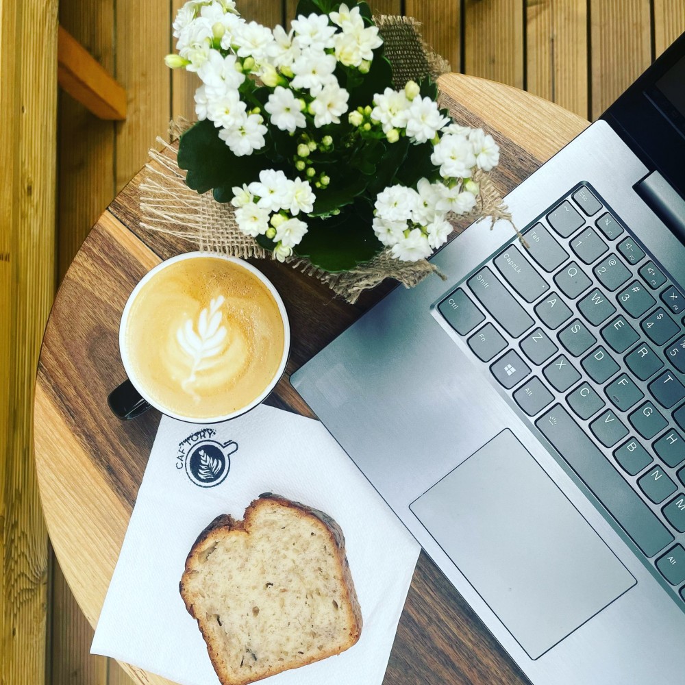 Pentru că ne-a plăcut, ne-am propus să deschidem cafeneaua noastră minunată. Iubesc design-ul intererior și, alături de un specialist, am reușit să trasformăm acest loc în unul extrem de fain, cu tentă minimalistă, super clean, luminos și nu în ultimul rând, cu flori. Ne-am dorit ca atunci când cineva intră în cafeneaua noastră să găsească totul aranjat, drept, să se bucure de spațiozitate și luminozitate. Deși spațiul unde se află Caf’tory are 25 de metri patrați, e un loc în care simți că te poți mișca.