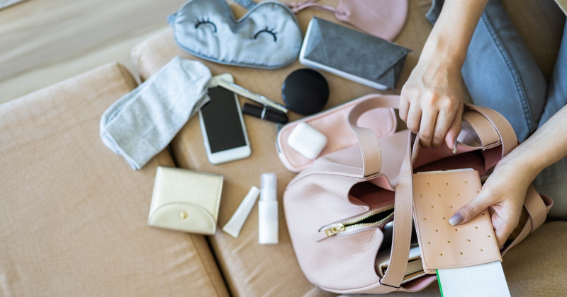 Orice femeie vrea să fie mereu atractivă și pregătită pentru orice situație, așadar anumite obiecte de frumusețe nu ar trebui să lipsească din geanta ta. Nu este necesar să iei cu tine tot sertarul cu cosmetice, ai nevoie doar de câteva care să te ajute la nevoie. Așadar, încearcă să pui în trusa ta o mostră din parfumul preferat, un mini deodorant, un mini rimel, o pudră iluminatoare și un luciu de buze sau un ruj. De asemenea, nu ar trebui să îți lipsească o perie de păr pliabilă, o pensetă, o oglindă mică și un elastic de păr.