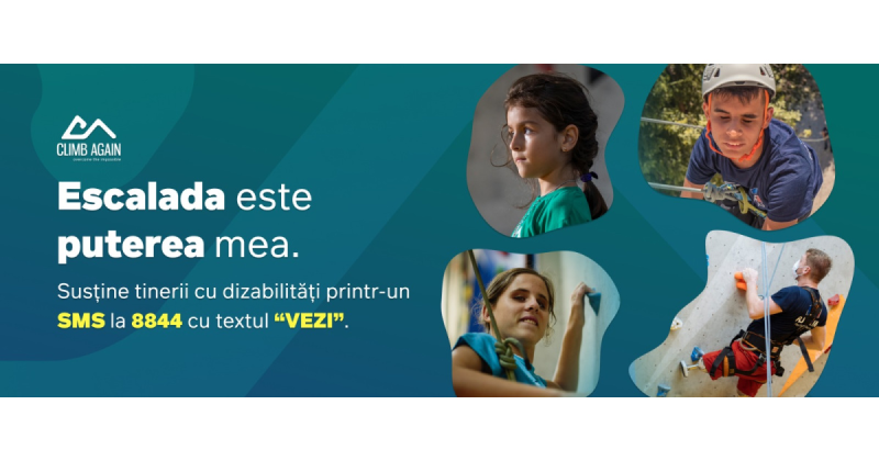 Escalada este puterea Arianei și a altor zeci de copii cu diferite tipuri de dizabilități. Dacă vrei să ajuți, donează 2 euro prin SMS la numărul 8844 cu textul VEZI sau orice altă sumă pe site-ul https://www.climbagain.ro/cum-poți-ajuta-tu !