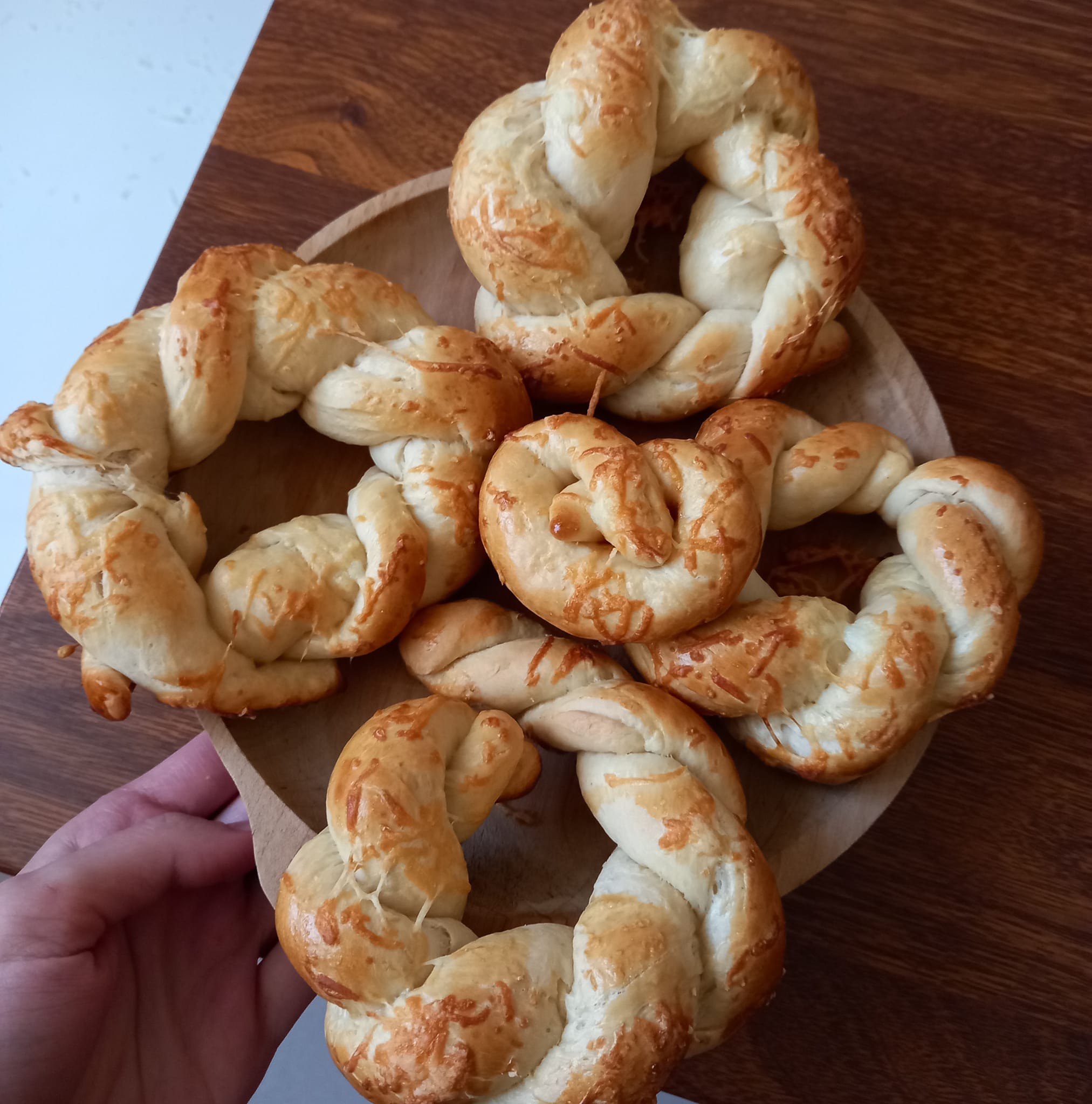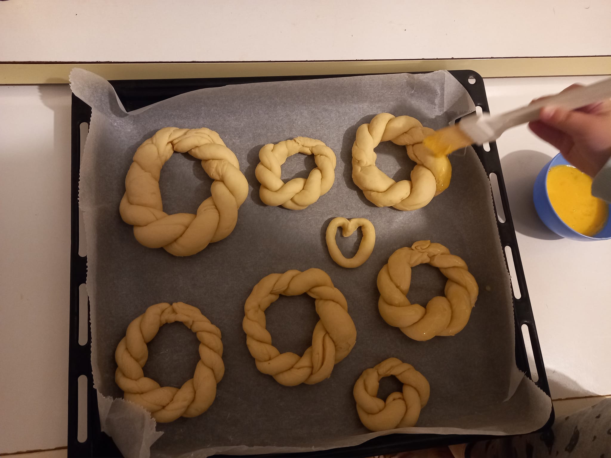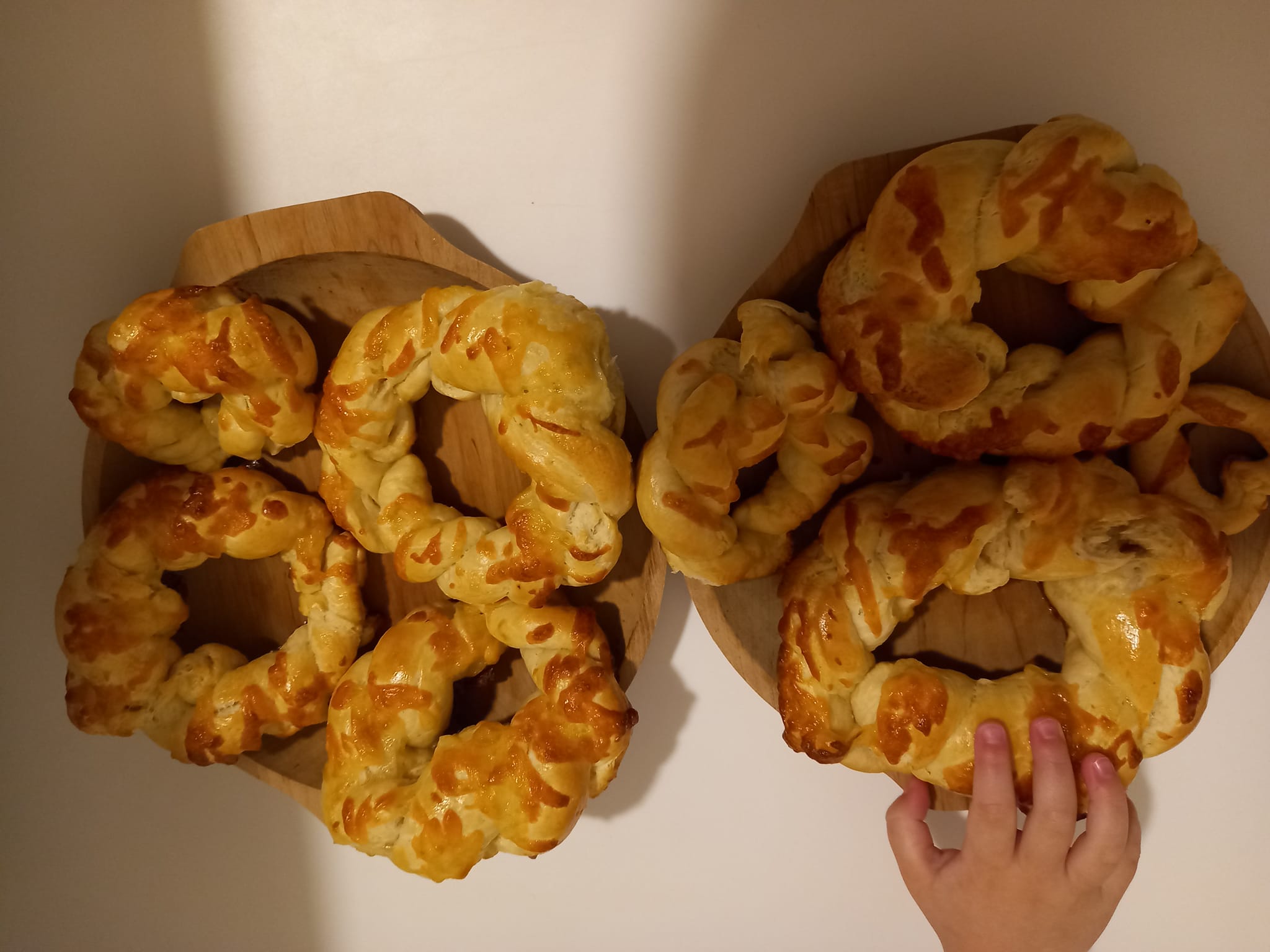 Noi facem o tavă plină de covrigi, însă nu ne agităm cu dimensiuni egale, asta pentru că ne place ca covrigii să aibă forme diferite, cei mai mari îi mâncam pe loc, iar ceilalți sunt numai buni de băgat în pachețelul pentru a doua zi la grădiniță.
