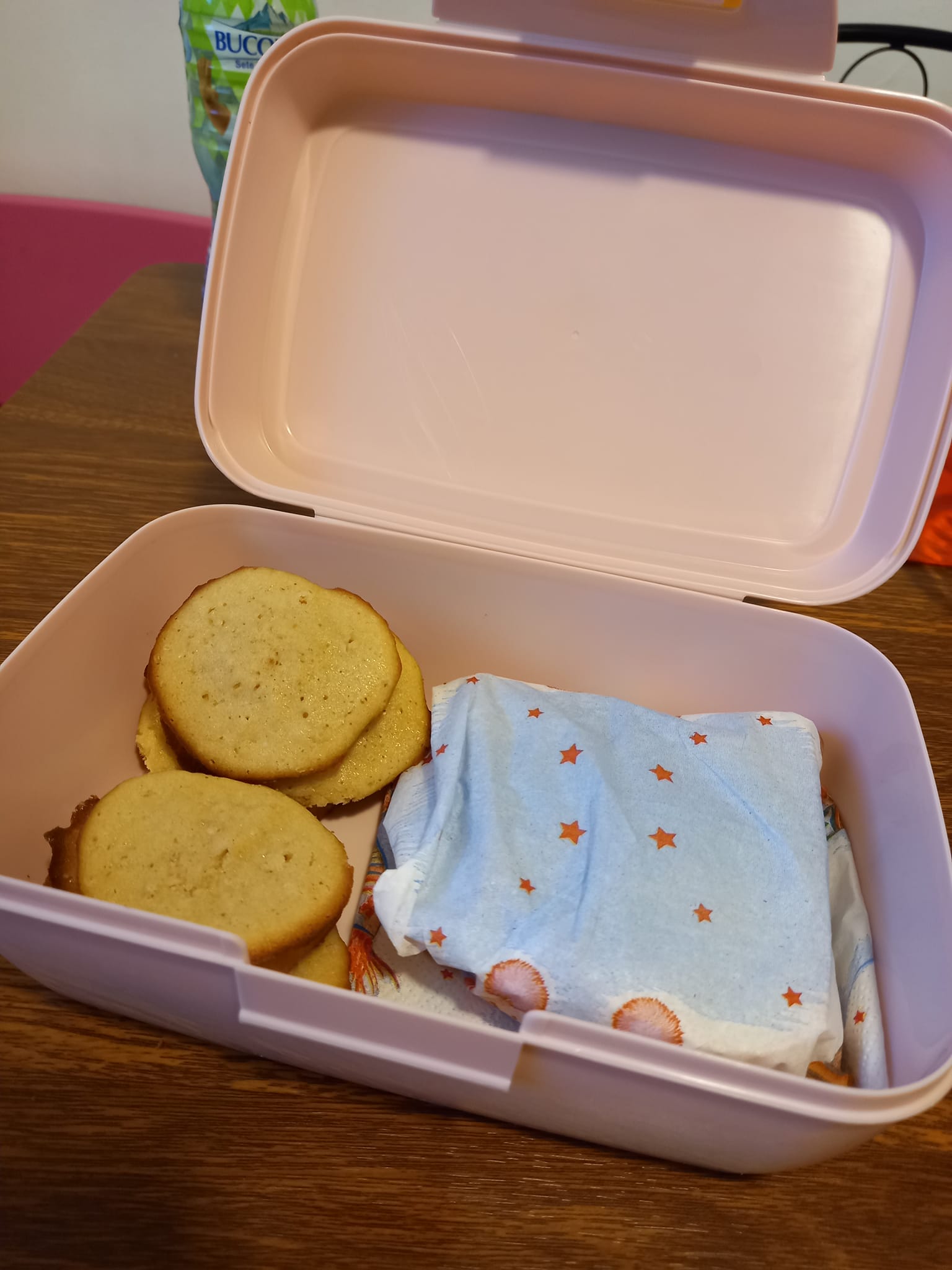 Pentru ultima zi a săptămânii am pregătit un sandviș cu pateu de ficat și fursecuri făcute de noi. Fursecurile sunt cu unt și cu foarte puțin zahăr brun. Delicioase și cu greu ne oprim amândouă să mai păstrăm câteva și pentru gustarea de la grădiniță.