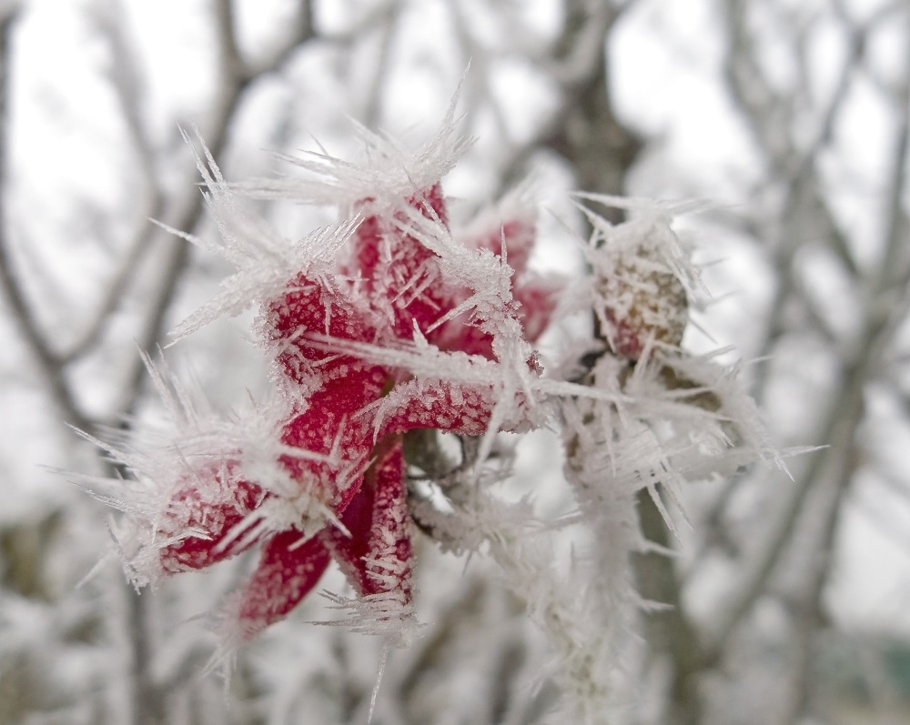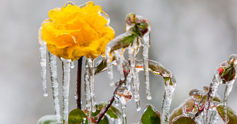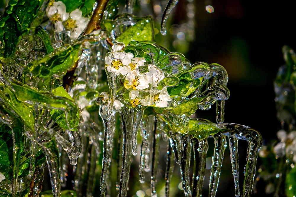 Este imposibil să nu te mire spectacolele vizuale spectaculoase care au loc uneori în grădini și pe câmpuri, atunci când apa înghețată de pe vegetație și flori pare că a încremenit natura în timp și spațiu și în gerul aprig al iernii. Uneori chiar îți creează impresia că te afli într-un tărâm ireal al gheții, într-o lume vie, dar înghețată în eternitatea momentului… Mai mult, în anumite zone, fermierii obișnuiesc să pulverizeze apă pe flori sau în pomi fructiferi în timpul nopții sau dimineața pentru ca astfel apa să înghețe și să formeze un strat de gheață protector care să protejeze plantele de gerul aprig și adevărat al iernii. Atunci când va veni dezghețul, florile se vor “trezi” la viață ca și cum nu ar fi simțit niciodată pe propria piele gerul năprasnic.
