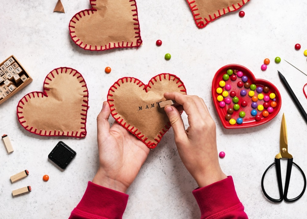 Dacă ai la îndemână o ștampilă cu inscripția “mama”, ar fi perfect pentru că poți imprima acest cuvânt cu cea mai mare încredere fix în mijlocul inimii. Dacă nu ai așa ceva acasă și nici nu găsești să achiziționezi, nu îți face griji. Scrie cu mâna ta cuvântul “mama” în mijlocul inimii, cu siguranță mămica ta se va bucura să îți recunoască scrisul pe o astfel de inimă.