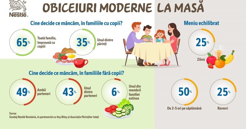Astfel, cel mai recent sondaj Nestlé derulat în parteneriat cu Itsy Bitsy și Asociația Părinților Isteți în rândul ascultătoarelor și ascultătorilor săi a relevat că 65% dintre familiile cu copii decid împreună cu cei mici care este meniul zilei. În 35% din familiile cu copii, decizia este luată de către un adult, copiii nefiind atât de mult implicați.