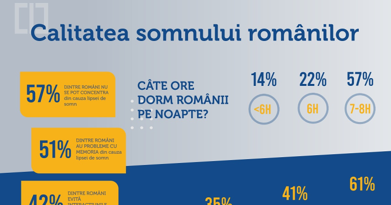 - 61% dintre respondenți dau vina pe stresul din timpul zilei, ca factor principal care le afectează calitatea somnului.