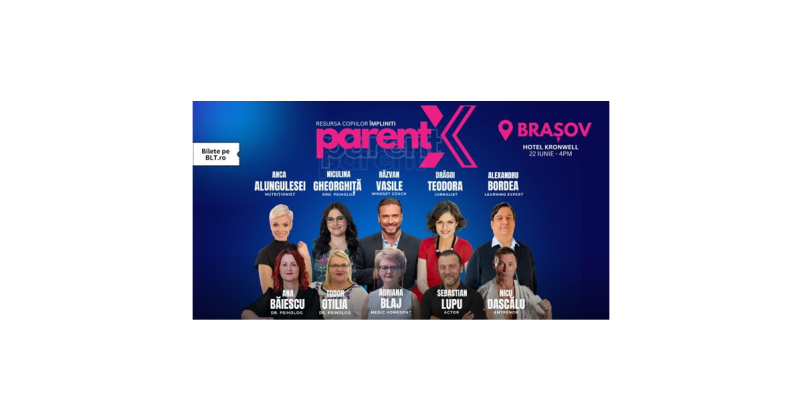 PARENTX, fenomenul educațional ce promite să schimbe percepțiile și să deschidă noi orizonturi în relaționarea părinte-copil, ajunge pe 22 iunie 2024 la Brașov. Evenimentul are loc, de la ora 16:00, la Hotel Kronwell. Printre speakerii prezenți la eveniment se numără personalitati precum Niculina Gheorghiță, Răzvan Vasile, Otilia Todor, Ana Baiescu, Anca Alungulesei, cât și mulți alți experți în psihologie, psiho-nutriție, dependente la copii sau învățare. PARENTX a mai avut anul acesta două conferințe la București si cate una la Iași, Cluj si Sibiu, toate fiind SOLD OUT. Banii proveniți din vânzarea biletelor vor fi folosiți pentru organizarea cursurilor de dezvoltare personală pentru copii aflați în risc de abandon școlar.