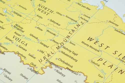 Un caz aparte e Rusia, care se întinde atât în Europa cât și în Asia. Cea mai mare țară ca suprafață, ocupând 11% din uscat, Rusia are teritorii pe două continente, granița convențională trecând prin Munții Ural.