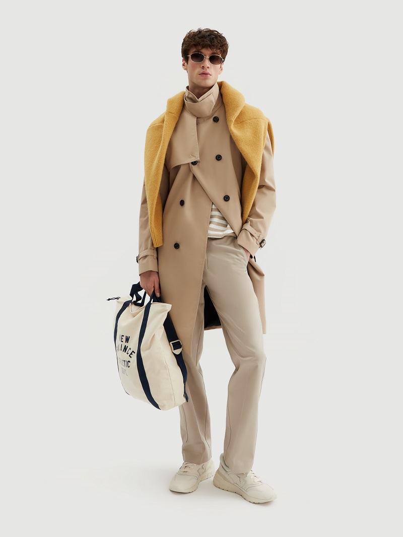 În moda masculină New Arrivals 2025, libertatea e suverană, combinând cu ușurință articole sport și clasice atemporale. Elementele cheie ale garderobei includ jachete ușoare și hanorace din nailon sau țesătură de nailon – oferte care fac referire la estetica sportivă, un element de bază pe podiumurile Prada și Louis Vuitton.