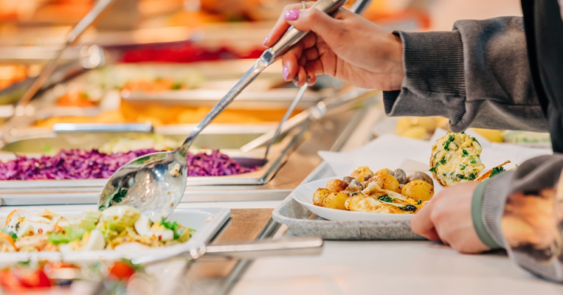 - Evită produsele expuse ore întregi pe bufet și servește-te cu porții sigilate ori făcute la comandă.