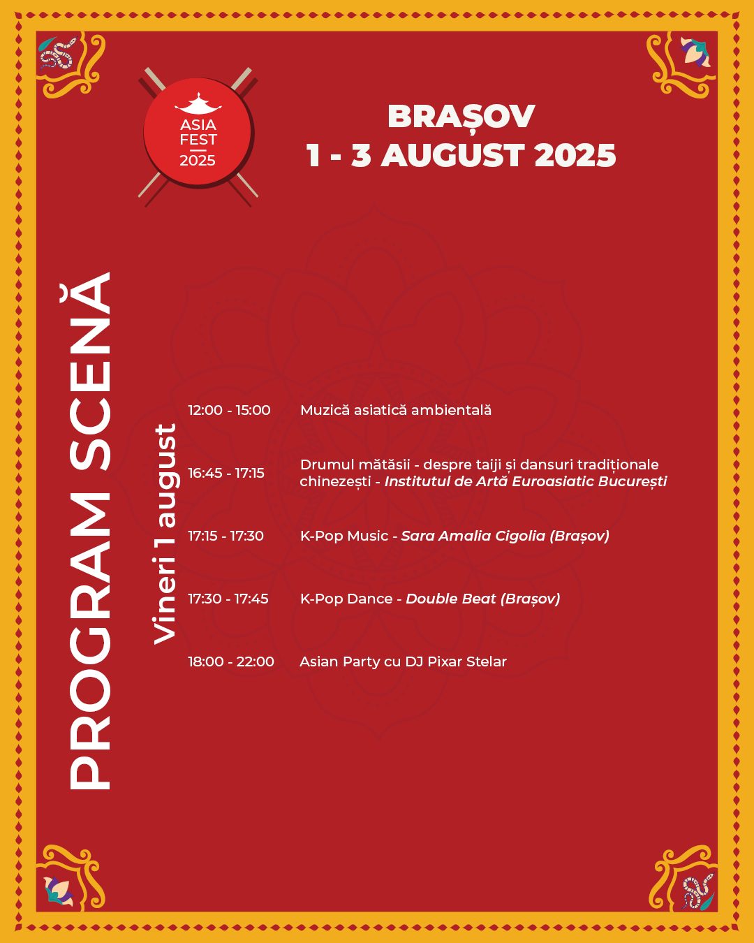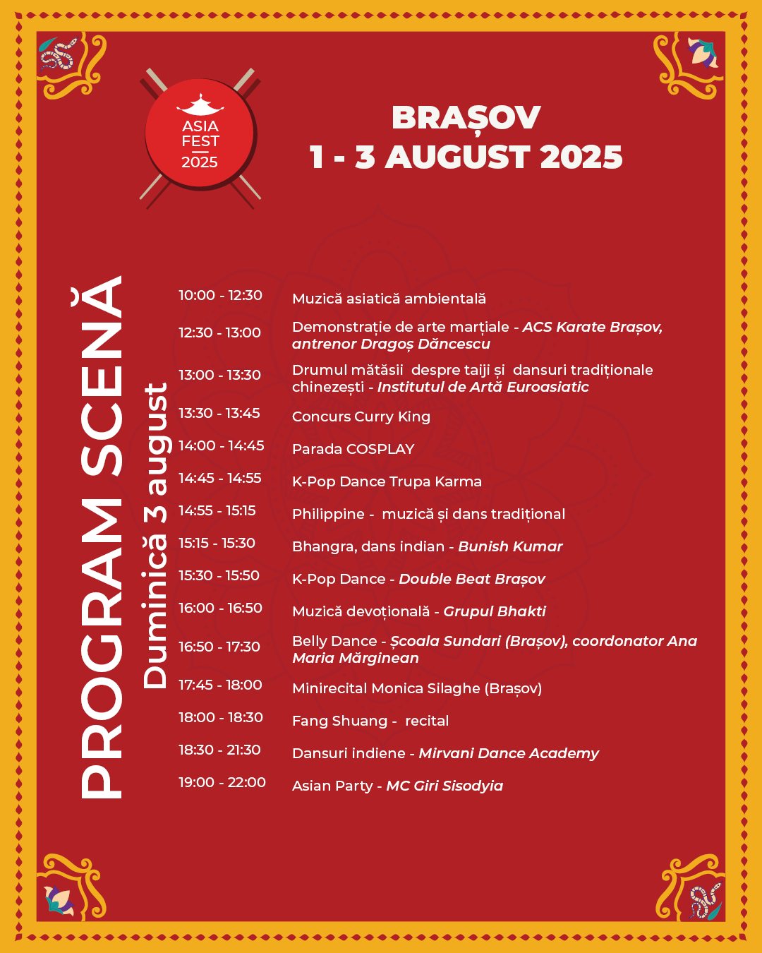 Pentru cei pasionați de stilul și rafinamentul asiatic, Asia Fest Brașov include și un târg, unde vizitatorii pot descoperi și achiziționa o gamă variată de produse tradiționale și contemporane din diverse țări asiatice. De la produse alimentare și băuturi exotice, până la articole vestimentare și obiecte decorative, zona de shopping promite o experiență completă, autentică și plină de culoare.