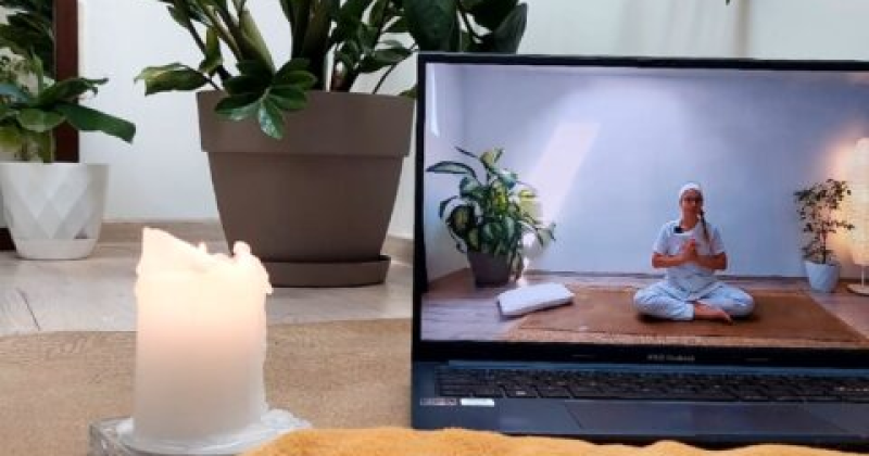 Meditația de grup are loc dimineața, online și durează doar 15 minute, oferind și înregistrări pentru practică în timpul și momentul disponibil fiecăruia.