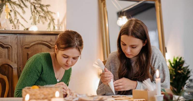 Așteaptă-ți invitatele cu șorțuri asortate (pot fi chiar un mic cadou pentru ele) și cu o băutură festivă. Un vin fiert cu anason, o ciocolată caldă bogată sau un ceai aromat vor dezgheța imediat atmosfera și vor da startul poveștilor.