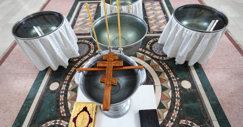 In anumite zone ale tarii, in asezarile intemeiate pe malul unei apei, in cadrul unei slujbe, preotul arunca o cruce de lemn in apele inghetate. Tinerii mai temerari se avanta in apele ca gheata pentru a scoate crucea din apa. Se spune ca cel care gaseste primul crucea si o va aduce la suprafata va avea parte de un an rodnic si norocos, iar gestul sau nu va fi trecut cu vederea de Dumnezeu in ziua Judecatii de Apoi. De asemenea, in popor se crede ca momentul aruncarii crucii in apa este echivalent cu izgonirea dracilor din ape si fuga lor rusinoasa, cu coada intre picioare, de-a lungul campiilor.
