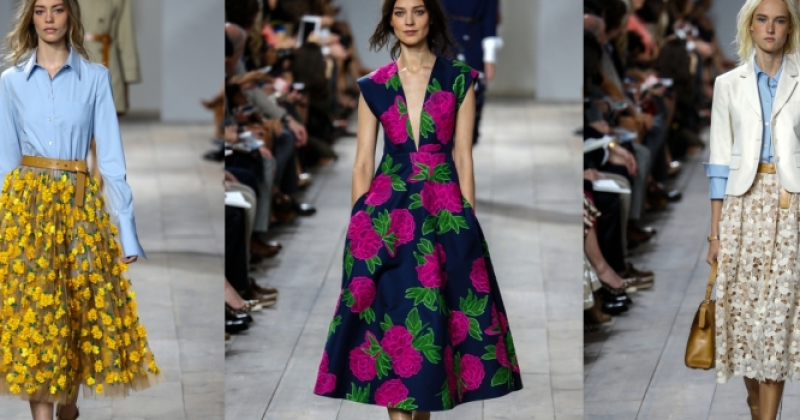 Insasi primavara pare ca s-a pogorat pe podiumul prezentarii colectiei de moda Michael Kors 2015. Colectia Ready to Wear Primavara 2015 by Michael Kors este o explozie de culoare si motive florale. Narcisele, florile de glicina, muscatele au fost culese si prinse ca aplicatii pe fuste din tul.