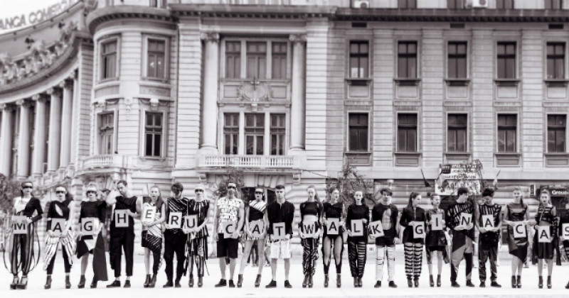 Magheru Catwalk este al doilea episod din seria fashion flashmob inceputa prin prezentarea „Black – Centrul Vechi Catwalk” si este modalitatea aleasa de Gina Cas pentru a-si prezenta linia vestimentara direct in fata oamenilor deveniti spectatori pe scena imaginara a bulevardelor, acolo unde pulseaza inima capitalei.