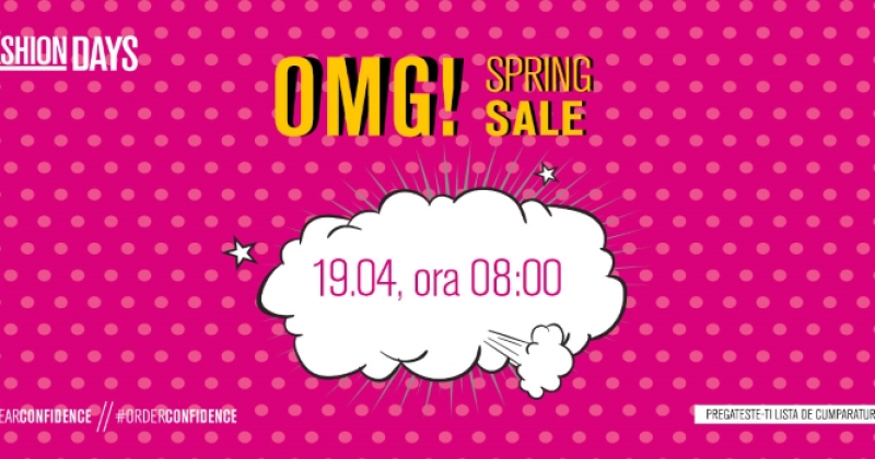 In cazul in care ai ratat ocazia de Black Friday 2016 sa iti iei haine si incaltaminte de firma, acum a revenit aceasta ocazie sub oferta OMG! Spring Sale de la Fashion Days, campania cea mai buna de reduceri Fashion Days de dupa Black Friday, cu reduceri de pana la 70% la aproximativ toate produsele de pe site. Toate produsele disponibile pe Fashion Days sunt articole de firma. Oferta OMG! Spring Sale este activa in perioada 19.04.-21.04.2017.