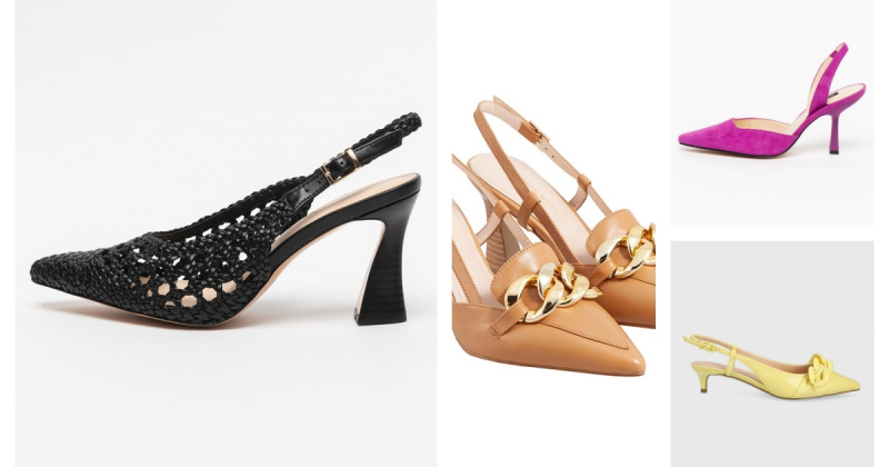Pantofii tip slingback (decupați în zona calcâiului), lăsând călcâiul deschis și beneficiind de o bretea care face legătura cu restul pantofului, sunt la modă în primăvară-vara 2022 și îi regăsim într-o multitudine de forme, asociați cu vârfuri și tocuri de toate felurile. Pentru a vă face o idee asupra acelor perechi de pantofi slingback care sunt pe gustul vostru, v-am pregătit o prezentare cu 10 modele de astfel de pantofi disponibili în magazinele online.