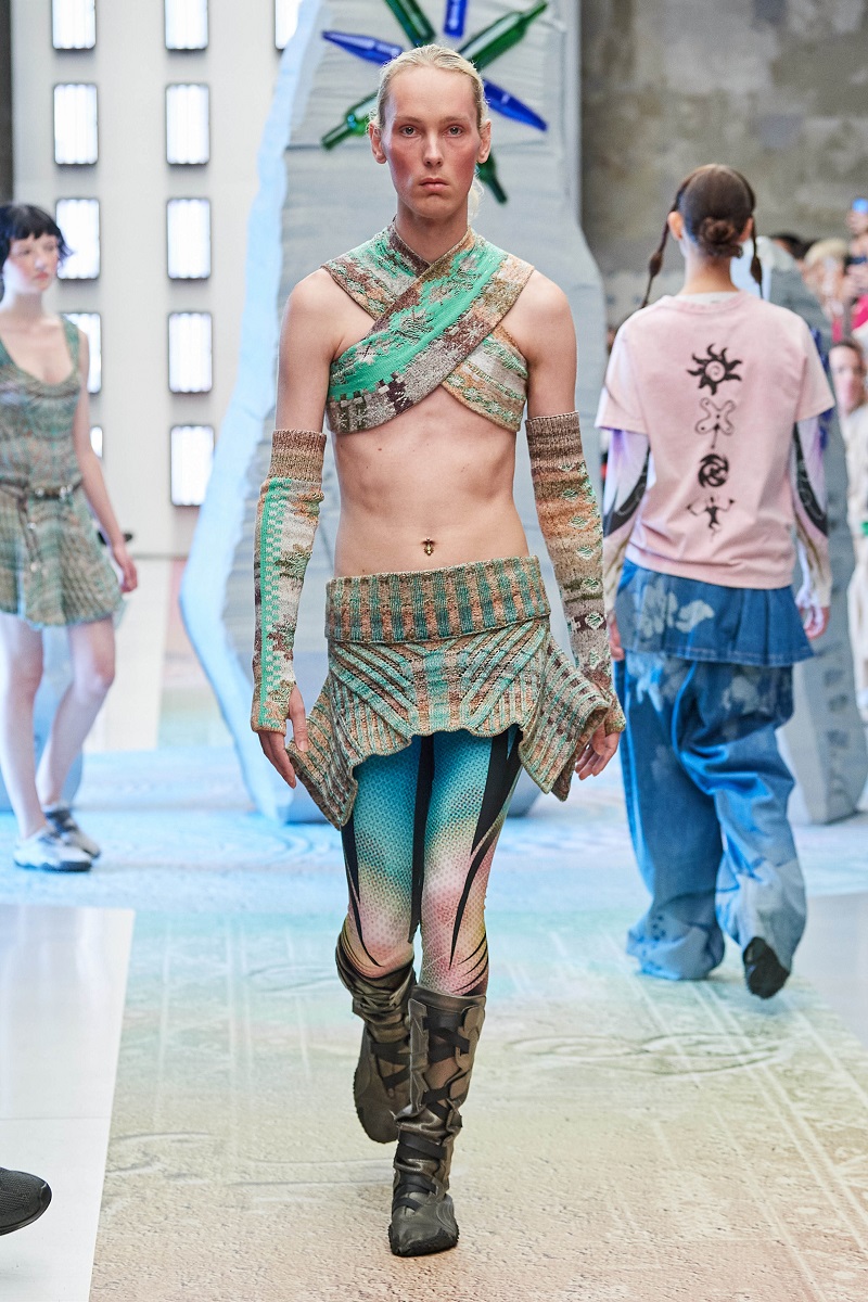 Colecția celor două co-creative directors, Paolina Russo și Lucile Guilmard, combină tehnici artizanale cu producția industrializată, creând o punte de legătură între meșteșugurile tradiționale și tehnologie. Podiumul pe care a fost prezentată colecția a fost unul multicolor, având un model de rune sculptate ce a evocat nostalgia urbană a țesăturilor găsite în casa copilăriei eroinei, protagonista brandului, precum și pe cea a frescelor pastelate pe care aceasta le desena pe trotuarele de afară. Pietrele statuare - elementele centrale de design ale spațiului - amintesc în același timp de cercurile antice de piatră și de structurile futuriste ale construcțiilor terestre care au servit drept sursă de inspirație pentru brand.