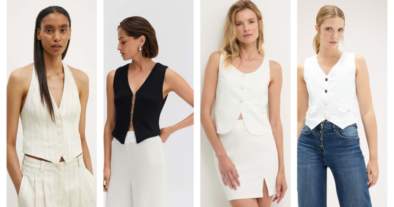 Vestele verii 2024 sunt confecționate din materiale ușoare și plăcute, sunt fără mâneci, și de cele mai multe ori sunt purtate direct pe piele pentru un aspect de elegant-chic, dar fără efort sau prea multă preocupare pentru aspect și teorii ale combinării.