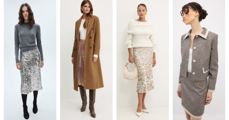 În sezonul rece, fusta cu paiete este o alegere surprinzător de versatilă, putând fi integrată atât în look-uri casual, cât și în apariții sofisticate. Poate fi purtată cu pulovere oversized din cașmir pentru un contrast între texturi sau cu jachete structurate pentru un efect de eleganță urbană. În funcție de stilul personal, paietele pot deveni elementul central al unei ținute sau pot fi temperate prin accesorii minimaliste.