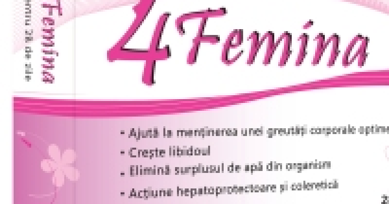 Dr. Gabriela Cotarcea, medic primar obstetrica-ginecologie afirma ca „fiecare componenta a acestui supliment unic are un rol bine stabilit, actionand impotriva durerilor de cap, scaderii libidoului, retentiei de apa, suprasolicitarii ficatului sau a kilogramelor in plus, acestea reprezentand motivele pentru care multe femei se tem sa foloseasca contraceptivele orale.” Pilula contraceptiva are acum un prieten sub numele de 4Femina, care se dovedeste a fi un sustinator al femeilor care vor sa fie protejate din toate punctele de vedere medicale. Lista lunga de vitamine, acid folic si hepatoprotectoare recomandate femeilor care folosesc contraceptia orala este inlocuita acum, cu un singur comprimat de 4Femina in fiecare zi.