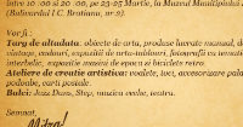 Intre 23 si 25 martie a.c., la Muzeul Municipiului Bucuresti (Palatul Sutu – Bd. I.C. Bratianu, nr.2, statia de metrou Universitate), pentru toti pasionatii de arta interbelica si nu numai, se deschide targul Picanterii de Bucuresti. (www.picanteriidebucuresti.wordpress.com)