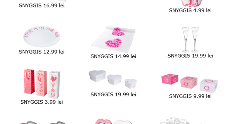 Colectia in editie limitata de Valentine’s Day din magazinul IKEA este plina de farmec. Farfuriile, paharele si accesoriile pentru cina in doi, luminitele pentru atmosfera, lumanarile parfumate pentru rasfat si ramele foto pentru momente dragi amintesc de un cantec iubit de toata lumea. Colectia SNYGGIS se numeste si „Love is in the air”, pentru perioada in care iubirea „decoreaza” atmosfera.
