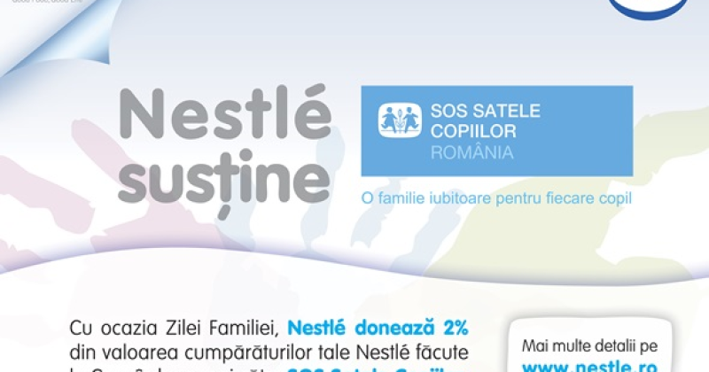 Pentru a sarbatori Ziua Internationala a Familiei, care are loc pe 15 mai, Nestle doneaza 2% din valoarea cumparaturilor tale in magazinele Cora in luna mai catre o mare familie: Organizatia SOS Satele Copiilor Romania.
