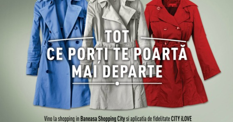 Tot ce porti te poarta mai departe! Pe langa experienta inedita de shopping pe care o ofera prin selectia unica de branduri internationale, Baneasa Shopping City invita iubitorii de fashion sa aiba parte de o experienta cu adevarat globala. Fa-ti cumparaturile, scaneaza bonurile in aplicatia City iLove si pregateste-ti bagajul pentru Paris, Londra sau Milano!