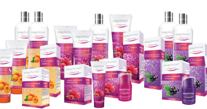 Lansata pe piata in februarie 2015, Gerovital Happiness se adreseaza persoanelor 16+ ani, dar este potrivita si pentru tenurile mature. Gama cuprinde 17 produse cosmetice pentru fata si corp, impartite in trei subgame, in functie de principiul activ continut (zmeura, afine si caise). Noutatea absoluta este reprezentata de cremele „Color Control” (CC), disponibile in trei nuante: deschis, mediu si inchis. Imbogatite cu pigmenti naturali si extracte de fructe, adaptate fiecarui tip de piele, cremele CC Gerovital Happiness estompeaza eficient imperfectiunile si urmele de oboseala, oferind tenului un aspect plin de stralucire.
