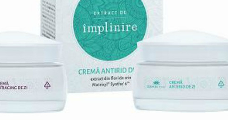 Cel de-al doilea produs este Crema antirid de zi cu extract de flori de crin, bogata in ingrediente regeneratoare si antirid ce readuc tenului confortul optim. Extractul de flori de crin are actiune antioxidanta, antiiritanta si de calmare a pielii uscate. Principiul activ antirid, Matrixyl® Synthe’ 6TM, cu eficienta dovedita prin testele in-vitro si in-vivo efectuate de producatorul ingredientului activ, stimuleaza sinteza componentelor matricei extracelulare (acid hialuronic, colagen, fibronectina), uniformizeaza relieful pielii si reduce suprafata acoperita de riduri cu pana la 28%. Uleiurile vegetale din compozitie (ulei de samburi de struguri, ulei de germeni de grau, ulei de masline bio) contribuie si ele la protejarea, hranirea, restructurarea si imbunatatirea gradului de hidratare a pielii. Vitamina E, impreuna cu filtrele solare, protejeaza impotriva efectului nociv al radiatiilor ce cauzeaza imbatranirea prematura a pielii. Aceasta crema este desinata tenului normal/uscat.