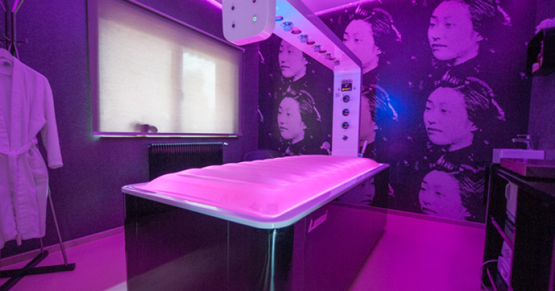 Aemotio – o experienta multisenzoriala care, prin imbinarea saunei pe patul incalzit, cu aromaterapie si cromoterapie, vibromasaj, dus Vichy si lumina infrarosie, ofera detoxifiere, relaxare, tratamente anti-celulita, drenaj, slabire si tonifiere.