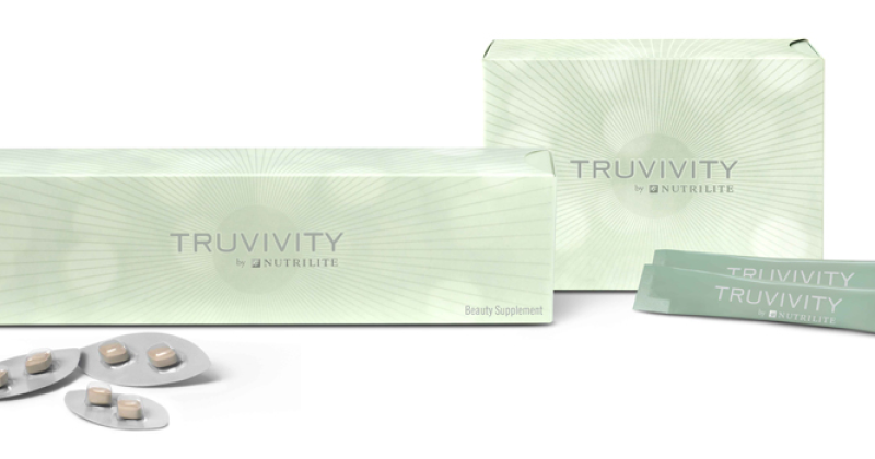 Sistemul de infrumusetare TRUVIVITY by NUTRILITE ofera o solutie cu adevarat eficienta pentru infrumusetare. Spre deosebire de abordarile conventionale de ingrijire a pielii, care au drept scop hranirea pielii din exterior, TRUVIVITY by NUTRILITE ofera suplimente alimentare care actioneaza din interior. Sistemul complet consta intr-un supliment de frumusete ingerabil si, complementar, o pudra de baut.