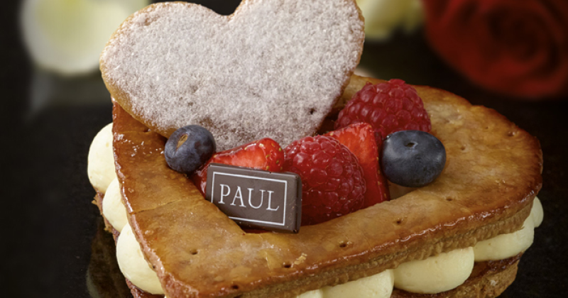 Ideale pentru o intalnire romantica in doi sau un cadou dulce, gama Paul cuprinde retete delicioase pentru a surprinde placut persoana iubita: Millefeuile Coeur Framboise (prajitura cu crema de vanilie, mascarpone si zmeura), Millefeuille Coeur Multi Fruit (prajitura cu crema de vanilie, mascarpone si fructe), Millefeuille Coeur Choco (tort cu crema de vanilie, ciocolata si fulgi de ciocolata), Coeur Framboisier (tort cu crema de vanilie, zmeura si martipan) si Sucette St. Valentin (acadea din ciocolata cu lapte si ciocolata alba).