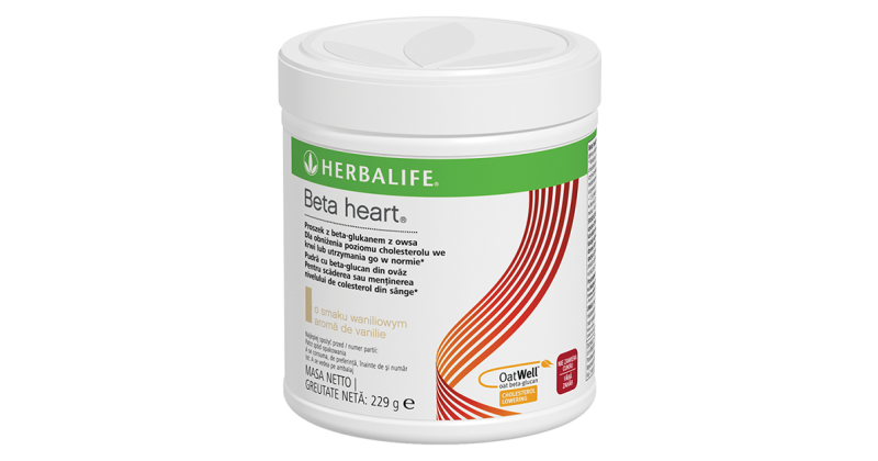 - Verifică-ți regulat colesterolul, o valoare prea mare poate avea efecte negative pentru aparatul cardio vascular. Pentru a evita un nivel ridicat al colesterolului este important ca, pe lângă un stil de viață activ, să alegi o dietă echilibrată. Herbalife Nutrition a creat Beta heart®, produs ce conține ingredientul cheie OatWell™ beta-glucan din ovăz (fibre solubile care apar natural în cereale) – despre care s-a demonstrat că poate contribui la scăderea sau menținerea nivelul de colesterol* în parametri optimi. Sunt suficiente doar 3g de beta-glucani din ovăz pentru a obține efecte benefice asupra colesterolului. Se prepară foarte ușor, cu apă, suc de fructe sau îl poţi adăuga în shake-ul preferat. Are doar 25kcal pe porție, 3g de fibre și 3g de beta-glucani. Nu conține zaharuri sau îndulcitori artificiali.
