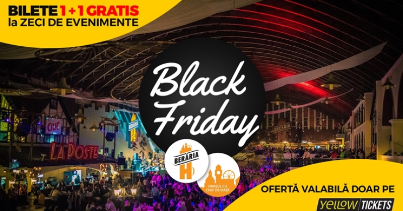 Berăria H – Orașul cu Chef De Viață – intră în cursa ofertelor de Black Friday cu bilete 1+1 GRATIS la zeci de evenimente care vor avea loc anul acesta sau la începutul anului viitor. Oferta este valbilă exclusiv pe platforma de ticketing YellowTickets.ro – unul dintre cei mai noi vânzători de bilete online de pe piață.