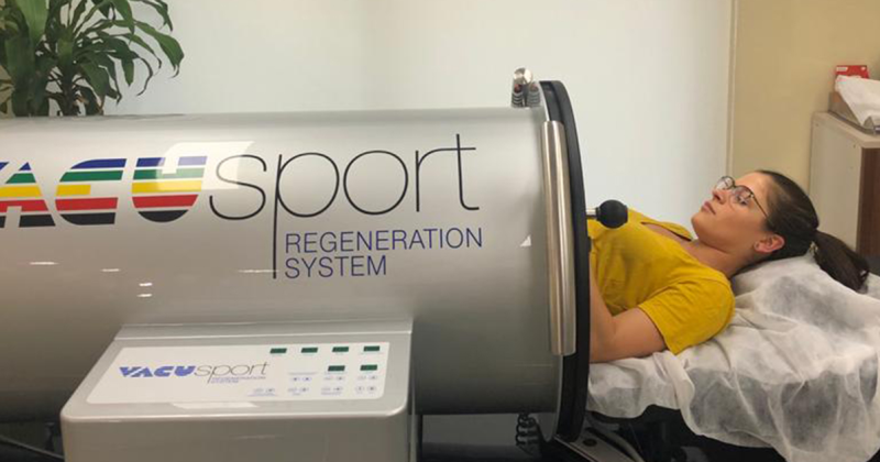 Practic, pacientul stă cu picioarele într-o capsulă, pană la nivelul bazinului, iar vidul produs în această capsulă stimulează circulația, punand sangele în mișcare. Utilitatea acestei terapii este uriașă, în diverse domenii, cu efect profilactic, curativ și de recuperare. În afecțiunile vasculare periferice, arterite, insuficiență circulatorie venoasă, limfedem, algo-neurodistrofia secundară post traumatică. Grăbește cu 50% închiderea rănilor, escarelor, arsurilor, ulcerelor varicoase, diabetice. Benefic în tratamentul polineuropatiilor. Este foarte util în toate afecțiunile ortopedice, post traumatice: fracturi, luxații, entorse, rupturi ligamentare, musculare, recuperarea după protezarea șoldului, genunchiului. În medicina sportivă, înlătură oboseala și febra musculară, ajută la recuperare rapidă în cazul sportivilor care vin după accidentări. Extrem de util și în cazul persoanelor care nu au făcut / nu pot face suficientă mișcare și au un stil de viață sedentar (prin îmbunătățirea semnificativă a circulației locale și creșterea producției de colagen, vorbim despre efecte spectaculoase anti celulită, neregularități ale epidermei, vergeturi, țesut conjunctiv slab, varice, picioare umflate etc.). Dar si sportivilor de performanta, care pot beneficia de terapie atat inaintea, cat si dupa efectuarea unui antrenament sustinut. Cunoscutele ex-Exatloniste Ana Maria Cazan si Cristina Constantinescu, antrenori de fitness, sunt absolut indragostite de Vacusport: „In doar jumatate de ora, cat dureaza sedinta, simt ca prind aripi, forta, un boost de energie de care uneori am mare nevoie. Mi-ar placea sa am timp sa vin zilnic la Skinmed dar, din pacate, reusesc doar de doua ori pe saptamana!”, spune Razboinica Ana Maria Cazan, trainer in cadrul unei cunoscute sali de fitness din Bucuresti.