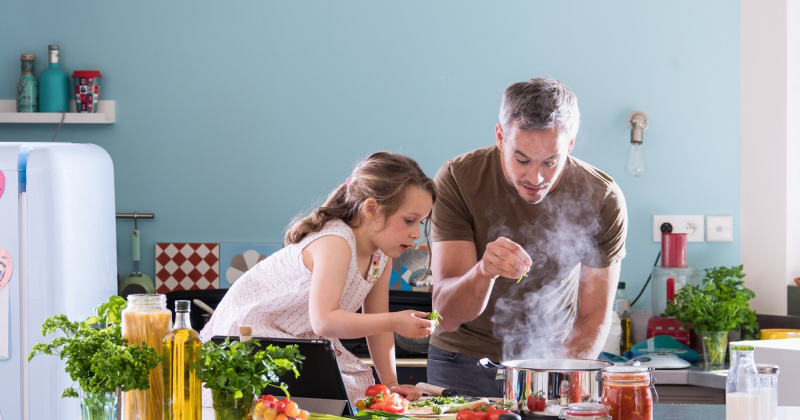 Un studiu realizat de Nestlé Research arată că acei copii implicați în pregătirea mesei au avut un aport mai mare de salată (+ 76%) decât copiii care nu au fost implicați.