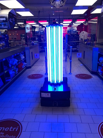 Robotul este o platformă mobilă inteligentă de sterilizare fără contact care a fost finalizat în luna octombrie, a trecut printr-o procedură de testare, iar ulterior a fost donat către Spitalul Clinic de Urgență București, secția de Cardiologie, pentru a susține eforturile medicilor în lupta cu pandemia.