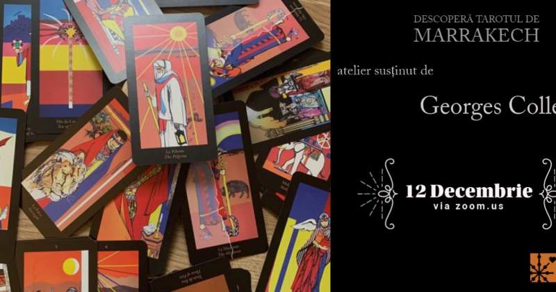 Sâmbătă, 12 Decembrie, 10:00-18:00, via zoom.us te invităm să descoperi cum te poți folosi de arhetipurile și simbolurile din Tarotul de Marrakech pentru procesul tău de cunoaștere de sine sau pentru practica ta în dezvoltare personală, terapie sau analiza viselor.
