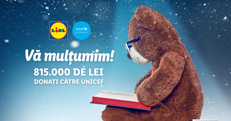 Pentru a contribui la schimbarea în bine a acestor statistici îngrijorătoare, Lidl se implică activ în susținerea accesului la educație de calitate pentru toți copiii, prin continuarea parteneriatului strategic cu UNICEF, pentru al patrulea an la rând. Astfel, prin intermediul campaniei organizate în magazinele Lidl din toată țara, în perioada 9 noiembrie – 13 decembrie 2020, pentru fiecare jucărie cumpărată de clienții săi, retailerul a donat 1 leu pentru UNICEF, iar, în total, suma de 815.000 de lei.