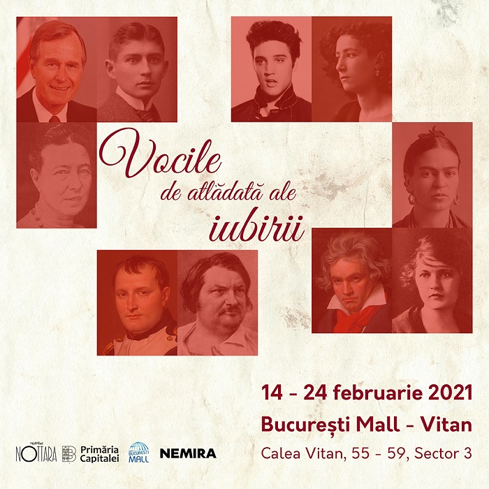 Expoziția Vocile de altădată ale iubirii, realizată în parteneriat cu Teatrul Nottara și cu editura Nemira, prezintă 10 dintre textele publicate de editură în volumul „50 cele mai frumoase scrisori de dragoste”, variind de la corespondența dintre Ludwig van Beethoven - „Eterna iubită“, Frida Kahlo - Diego Rivera până la Marjorie Fossa - Elvis Presley și George Bush - Barbara Pierce. Expoziția va avea loc în perioada 14 - 24 februarie 2021, la primul etaj din București Mall - Vitan. Mai mult, fragmentele alese au fost interpretate de patru actori îndrăgiți ai Teatrului Nottara (Sorina Ștefănescu, Ioana Calotă, Răzvan Bănică, Filip Ristovski), iar filmările acestor momente artistice vor putea fi urmărite zilnic, începând cu 14 februarie, pe paginile de social media ale București Mall – Vitan.