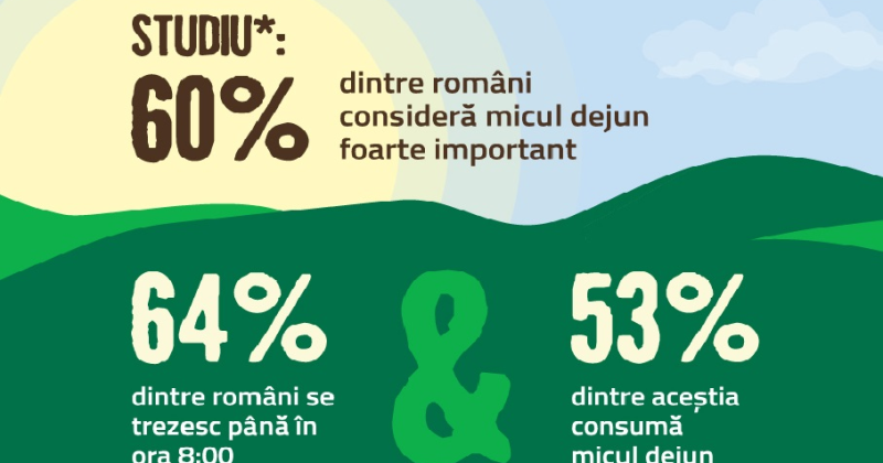 Jumătate dintre români sar peste micul dejun, majoritatea fiind fără copii. Ei au tendința de a consuma ceva mai târziu în timpul zilei, ca mic dejun prelungit sau gustare, relatează studiul realizat de compania de cercetare Epiphany pentru FrieslandCampina România și dat publicității cu ocazia zilei de 1 iunie - Ziua Internațională a Laptelui (International Milk Day).